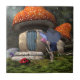 Éclairez votre maison avec cette tuile qui présente une jolie fée aux cheveux roses avec des ailes bleues saluant un coccinelle qui a erré dans une forêt magique près de la petite maison de champignons de la fée.