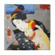 Carreau Femme de Kuniyoshi avec une tuile de chat