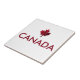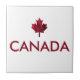 Le Canada en caractères majuscules rouges et profonds, surmonté d'une feuille d'érable rouge à deux tons rayés. Sur un blanc solide.