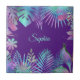 Feuilles tropicaux tendance iridescente sur arrière - plan violet avec nom turquoise ou monogramme. Cliquez sur "Modifier" pour modifier facilement les couleurs et les styles de type.