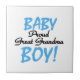 L'arrière grand-mère fière d'un bébé garçon va adorer cette conception de texte noir et bleu Fière Grand grand-mère d'un bébé garçon garde des boîtes de saké, des carreaux, des ornements, des carnets, des théières, des lanceurs, des tasses, des tasses, des cartes, des autocollants, des sacs fourre-tout, des magnets, et plus !