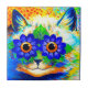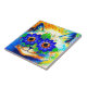 Carrelage représentant la peinture animale de Louis Wain Cat Flower Eyes (1860-1939). Un chat arc-en-ciel grince largement. Des fleurs bleues recouvrent ses yeux. Un cadeau merveilleux pour l'art amoureux des chats et anglais.