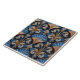 Carrelage Art Déco en céramique avec des motifs floraux bleu, or et argent sans coutures sur un arrière - plan bleu foncé, agencement symétrique, détails complexes, style vintage, élégant et orné, motif répétitif, art décoratif.