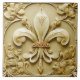 "fleur de lis", "beige or neutre clair", "antique décorative ornée vintage", "décoration monochrome classique française", "fleuron décoratif royal traditionnel", "symétrie feuilleté symétrique", "blanc crème médiéval", "décoration de château luxueuse et élégante", "art céramique historique complexe", "symbole royal luxueux"
