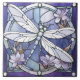 Carreau Fleur en verre tendu de libellule bleu foncé