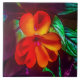 Ce carrelage en céramique de 6" présente une photo originale de ZoeSPEAK d'une fleur d'impatiens orange rouge. Sunlight ajoute des reflets jaunes aux pétales et illumine les feuilles verts, donnant un bord net aux ombres violettes sur les feuilles ci-dessous.