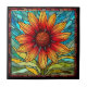 Carreau Fleur sauvage rouge et jaune en verre tendu