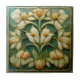 Les créations Art Nouveau ont été trouvées à la fin des années 1800 en France dans les oeuvres d'art, la publicité, l'architecture, les carreaux et beaucoup d'autres endroits. Ce design Art Nouveau présente des fleurs blanches avec des tons clairs sur un arrière - plan de couleur émeraude. Les tons dorés viennent compléter les fleurs blanches crémeuses et le bleu-vert ou l'émeraude. Cet Art Nouveau possède des qualités imaginaires et fantaisistes qui sont magnifiquement attractives. Il fait partie d'une série de tuiles Art Nouveau similaires qui se complètent parfaitement lorsqu'elles sont utilisées ensemble.