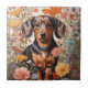 Carreau Fleurs Brown De Dachshund Et Cosmos