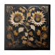 "tournesol jaune", "tournesol", "or noir et or doré", "symétrie gothique symétrique", "jardin chaud de chaleur estivale", "tête de fleur décorative", "carreaux de céramique fleurie ornementale", "style Art déco nouveau", "look antique vintage", "style halloween éffrayant déplaisant"