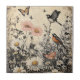 Carreau Fleurs, oiseaux et papillons sur papier vieilli (1