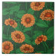 Carreau Fleurs Zinnia orange, feuilles verts sur vert fonc