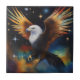 Sur Une Photo Colorée D'Un Arrière - plan De Nuit Étoffé Est Un Aigle Volant Dans Un Design D'Art Cosmique.