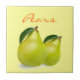 Fruit vert de poire avec le feuille exprimant sur le jaune. Deux poires vert clair de tiges et de feuille sont centrées à côté d'un un autre. On est plus petit, et elles toutes les deux ont un fond d'ombre pour la forme, la profondeur et le réalisme. Le manuscrit rouge de mot est sur un arrière - plan jaune. Cette image de thème de fruit de nature est parfaite pour votre décor de cuisine ou peut être encadrée. Plus de tuiles de fruit sont disponibles dans mon magasin et peuvent être employées comme ensemble. Gardez ou changez les mots, ou la couleur des textes avec la sélection de bloc de couleur. La couleur de jaune d'arrière - plan de tuile peut être changée.
