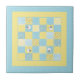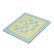 Un amusant carrelage en céramique "Wales Forever", avec un design Faux Patchwork de motifs de moutons et de motifs en Blues et Jaunes, en équipe avec la coordination Check Ginghams et Pots Polkas.