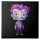 Tuile en céramique avec une jolie illustration. Monstre Frankenstein aux cheveux roses et violets et au manteau et à la cravate dapper.