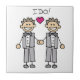 Les cadeaux de mariage gay et les faveurs de mariage gay pour les mariés gays attachant le noeud et se mariant. Photo de marionnettes d'art figuré en bâtons et texte qui dit, "Je le fais". Idées cadeaux pour les mariés homosexuels ayant un mariage.