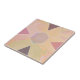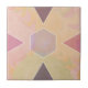 A soft, pastel-colored ceramic tile featuring a modern geometric composition. The design includes triangles and a central hexagon outlined in white, set against a swirling marbled background of peach, pink, and lavender hues. Ideal for contemporary spaces seeking a subtle yet artistic touch.