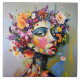 "Géométrie Florale" - Un Portrait Botanique. Une rencontre complexe de design en mosaïque angulaire et d'abondance florale luxuriante définit ce travail. Le regard perçant de la femme contraste avec la douceur des fleurs, créant un équilibre entre précision et chaos. Une palette vif de roses, jaunes, violets et rouges met en évidence le lien entre la structure et l'organique, donnant un portrait moderne et inoubliable.