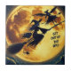 The image depicts two witches flying on their brooms against the backdrop of a large yellow full moon. One witch is at the forefront, leading the other. There is text at the bottom of the image that reads “GET OUT OF THE WAY.”