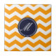 Carreau Gold et Navy Blue Chevron avec tuile Monogram