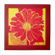 Carrelage en céramique dans une image graphique moderne rétro d'une grande fleur d'aster marguerite, en rouge vif et jaune doré, contre un arrière - plan rouge et safran jaune, et bordé d'un rouge profond
