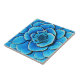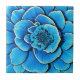 Carreau de céramique en forme de magnifique fleur de camélia aux nuances de bleu de cobalt et de turquoise, rehaussées d'indigo foncé et de blanc