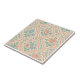 Aquarelle céramique marocaine en pêche, rose, bleu et vert pastel. Les motifs fleuris et arabesques sont utilisés pour la décoration boho, méditerranéenne et orientale.