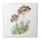 aquarelle traditionnelle de grands champignons de couleur brune poussant d'un sol forestier vert et marron sur un carrelage en céramique.