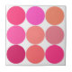 Carrelage en céramique au milieu du siècle moderne imprimé géométrique de grands points, dans une grille de neuf couleurs coordonnées - nuances fuchsia, corail rose, corail orange, mauve et buff, sur un arrière - plan blanc