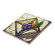 The artwork is defined by bold, clean lead-line structures and a sophisticated palette of amethyst, emerald, and warm amber. Designed to is further accented by stylized masonry textures and abstract "shattered" shards that add a modern architectural edge. This durable ceramic tile is perfect as a decorative kitchen backsplash accent, a unique trivet, or a framed tabletop display piece. It’s an ideal gift for nature lovers, or those seeking meaningful sacred symbolism in their interior decor.