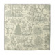 A vintage-inspired green toile seamless pattern ceramic tile featuring graceful deer resting and standing among winter foliage. The design includes evergreen trees, holly leaves, pinecones, and delicate snowflakes. This elegant and timeless illustration evokes a peaceful woodland Christmas scene.