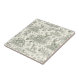 A vintage-inspired green toile seamless pattern ceramic tile featuring graceful deer resting and standing among winter foliage. The design includes evergreen trees, holly leaves, pinecones, and delicate snowflakes. This elegant and timeless illustration evokes a peaceful woodland Christmas scene.