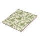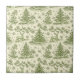 A vintage-inspired green toile seamless pattern ceramic tile featuring graceful deer resting and standing among winter foliage. The design includes evergreen trees, holly leaves, pinecones, and delicate snowflakes. This elegant and timeless illustration evokes a peaceful woodland Christmas scene.