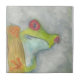 Un joli treefrog lui arrache la tête derrière un moignon. Un arrière - plan gris clair crée une atmosphère marécageuse. Fait en aquarelle.
