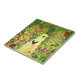 Carrelage représentant la peinture à l’huile de Gustav Klimt Jardin aux coqs (1917). Deux poulets bruns se dressent sur un chemin de jardin. De belles fleurs roses, rouges et blanches fleurissent le long du chemin. Un grand cadeau pour les amateurs d'art Art Nouveau et autrichien.
