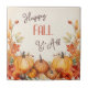 Parfait pour la saison d'automne, ce carrelage coloré montre une récolte de citrouilles oranges encadrés par des feuilles. Le texte au milieu dit "Happy FALL Y'All" en marron et orange. Tout est posé sur un arrière - plan beige clair.