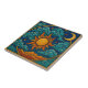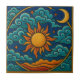 Admirez la danse céleste avec cette mosaïque décorative fascinante, avec un soleil éclatant, une lune de croissant et des nuages tourbillonnants contre un bleu cosmique profond. Cette pièce en céramique capte magnifiquement l'harmonie du jour et de la nuit, ajoutant une touche de charme mystique et d'émerveillement bohème à n'importe quelle chambre. Parfait pour créer un point focal qui inspire l'émerveillement et la contemplation. Immergez votre environnement dans la beauté céleste avec ce magnifique carrelage. Ce carrelage au design complexe présente en son centre un brillant soleil orange et jaune, encerclé par des nuages bleu et turquoise cool, une lune sereine de croissant et des étoiles scintillantes, le tout face à un riche ciel indigo. La bordure dorée avec des détails d'angle élégants et l'élément d'arc de balayage encadrent parfaitement cette scène éthérée. Le soleil vibrant, la lune croissante et les nuages tourbillonnants font de ses couleurs riches et de son design complexe un état vraiment enchanteur. Un accent décoratif idéal pour les décors à la recherche d'une ambiance détendue.