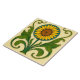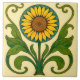 Émettant chaleur et élégance, ce carreau de céramique Art Nouveau présente un tournesol stylisé avec une symétrie complexe et des fioritures botaniques fluides. Les riches pétales jaunes et le centre à texture de mosaïque s'épanouissent sur un fond bleu foncé, encadrés par des vrilles vertes ornées. Parfait pour les crédences de cuisine, les panneaux muraux décoratifs ou les pièces d'accent saisonnières, ce design allie charme vintage et impact visuel audacieux.