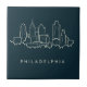 Caractéristiques de conception ce une illustration tirée par la main de l'horizon de Philadelphie sur un arrière - plan bleu-foncé.