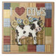Un design mignon d'une vache avec des tournesols sur un arrière - plan de patchwork et burlap de pays, avec l'art texte I Heart Cows. Fait une idée cadeau parfaite pour quelqu'un qui aime les vaches, vit dans une ferme ou une petite exploitation ou qui aime juste le décor et les accessoires de style champêtre.