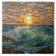Un lever de soleil spectaculaire sur l'océan avec des vagues qui s'élèvent, et des bijoux comme des fruits de mer dans une illusion/effet de vitrail. Accentuez votre décor de maison avec une belle tuile de lever de soleil à utiliser comme un trivet, pour ajouter un accent à une cheminée, ou de l'arrière-plan.
