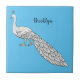 Carreau Illustration d'oiseau de paon blanc