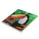 Illustration exotique de tuile de portrait d'oiseau de faune de toucan par l'artiste Rick court d'un toucan se reposant dans son habitat sud-américain indigène de jungle entouré par le feuille, les paumes et la lumière du soleil de banane allumant la forêt.