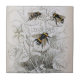 Illustration vintage HoneyBee | céramique carreaux Vintage nature illustration de l'humble abeille de miel fond d'ivoire dépoli dessin au crayon avec des abeilles à miel rayé noir et jaune se nourrissant de pollen