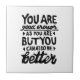 Impression en lino noir et blanc d'une citation motivationnelle qui dit "Vous êtes assez bon, mais vous pouvez toujours être meilleur". Offre un encouragement pour que les gens sachent que l'acceptation de soi et la croissance vont de pair.