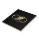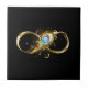 Or, symbole brillant de l'infini, décoré de bijoux plumes paon avec turquoise sur arrière - plan noir.