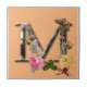 Belle lettre M, avec les dames vintages, les roses et un papillon