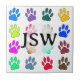Empreinte de patte de chien dans de nombreuses couleurs. Design original. Carreaux céramiques carrés personnalisés. Modifiez les initiales pour customiser. Une idée cadeau unique pour les amoureux de les chiens.