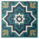 The Cordoba Star tile design draws inspiration from classical Islamic geometry and Moorish craftsmanship. Featuring a navy blue eight-pointed star at the center, it’s framed with flowing arabesque flourishes and delicate gold-accented floral motifs. The harmonious teal, cream, and blue palette evokes a refined Mediterranean warmth, making it perfect for decorative tiles, kitchen accents, and culturally inspired interiors.